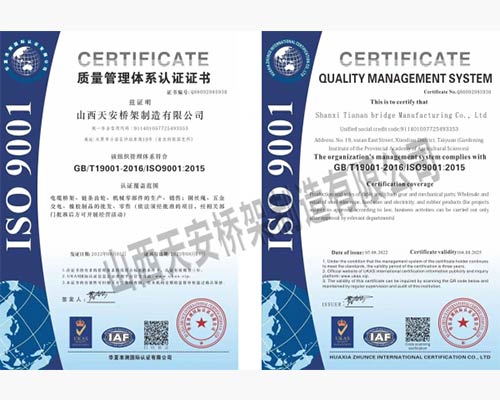 山西天安橋架制造有限公司是一家生產(chǎn)電纜橋架、母線槽的大型廠家,主要生產(chǎn):槽式橋架、托盤式橋架、梯級式橋架、大跨距橋架、母線槽有空氣型、密集型、耐火型、鋁合金等以及通風管、可根據(jù)客戶要求定制各種型號各種規(guī)格,表面處理有熱鍍鋅、防火噴塑、防火漆、熱鍍鋅等,產(chǎn)品廣泛應(yīng)用于石油、化工、治金、電力、紡織、通訊、高層建筑等各個領(lǐng)域。產(chǎn)品具有外形美觀,耐腐蝕性強,安裝靈活方便,品種齊全等特點。